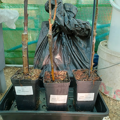 And here's the real thing 😆 I'm sure they'll be fine in a few months! They have buds already but they're waiting in the polytunnel.